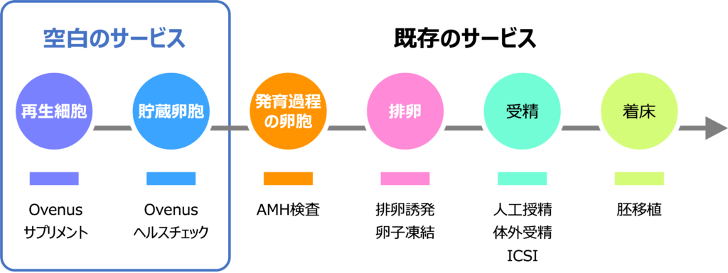 将来の妊孕性やホルモン機能を支える貯蔵卵子の再生力を測定し、向上させることで女性の健康と将来設計に貢献します。